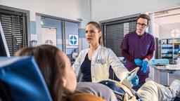 Dr. Julia Berger operiert gemeinsam mit Assistenzarzt Olli Probst, der sich in einer heiklen Situation als sehr reaktionsschnell beweist.