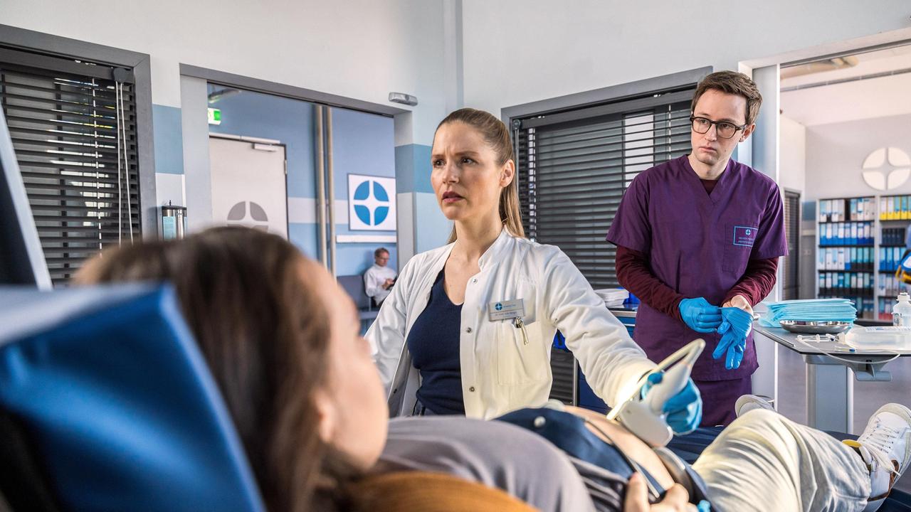 Dr. Julia Berger ist mit Assistenzarzt Olli Probst in der Notaufnahme. Dort nehmen sie die schwangere Patientin Romy Hegel auf. | Bild: